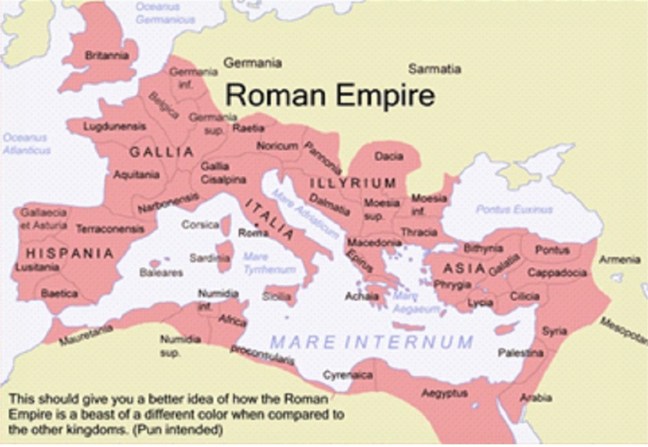 Another reason why this fourth kingdom cannot be Rome is the reason for the dream itself. God was showing us and King Nebuchadnezzar what would be happening with his kingdom in the future. His kingdom would be the land area under Nebuchadnezzar’s control. In verse 45 Daniel tells Nebuchadnezzar that God has made known to him what shall come to pass hereafter. There is no reason to show him what will happen with Europe, and the Roman Empire was predominately European. It controlled most of Europe but only a fairly thin strip of land that borders the Mediterranean Sea in Africa and Asia. The Roman Empire never conquered Babylon. The Romans crossed over the Euphrates River only once, and that was only for approximately 30 days before they were driven back. Each of the kingdoms listed in Daniel grew in mass and conquered the previous kingdoms area; Rome was never able to do this. Rome was primarily a European and Mediterranean Empire. Geographically, Rome was a very different empire than the others listed in these verses.