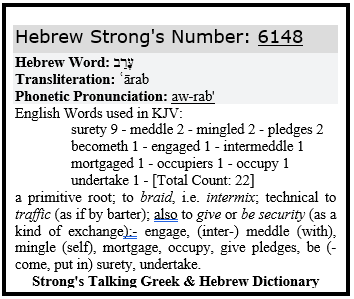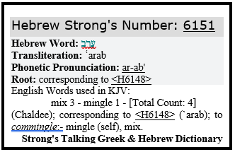 The 5th reason why the 4th and 5th kingdoms are not Roman is by the further description that is given in this verse. The actual word used for mixed in the original text (which is used 3 times) is “Arab.” That alone is a perfect description of these kingdoms. Now let’s take it a step further and find out what the text means. Here is the definition taken from Strong’s Greek & Hebrew Dictionary.